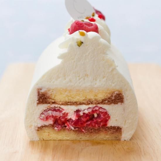 甘酸っぱいフランボワーズ(ラズベリー)をセンターにしのばせて、ただ甘いだけではない酸味が活きたショートケーキを作りました。